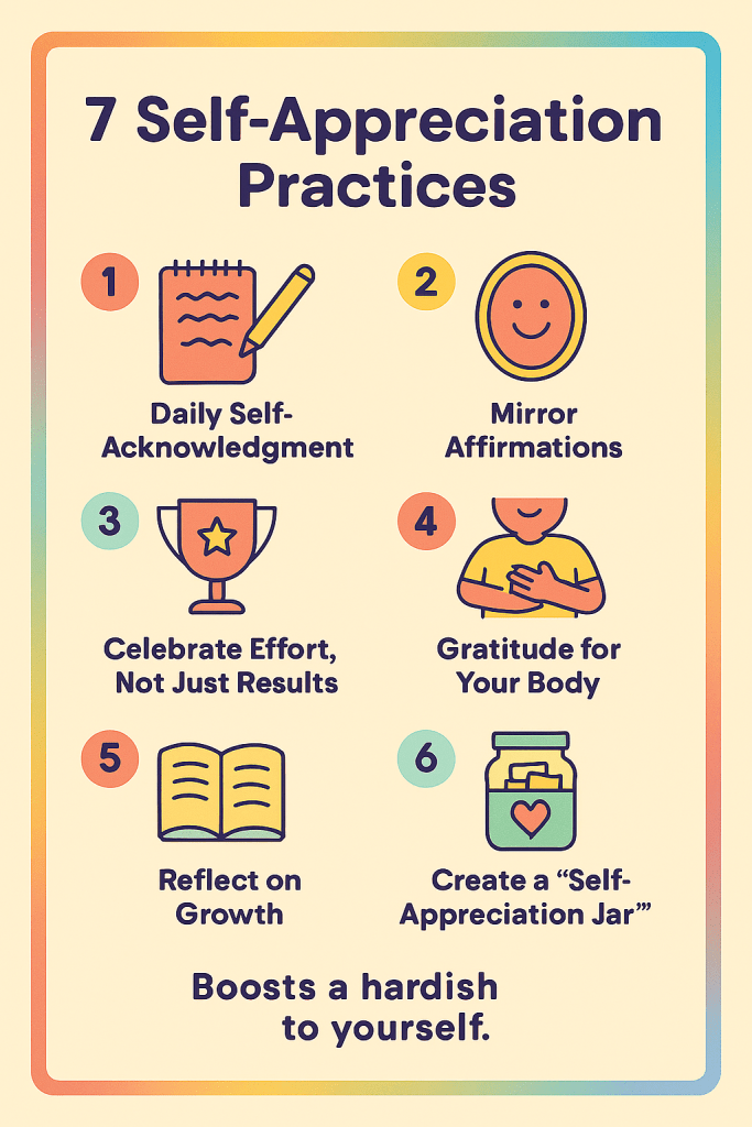 | Self-Appreciation | Gratitude for self | Recognition of worth | “I’m grateful for my resilience.” |